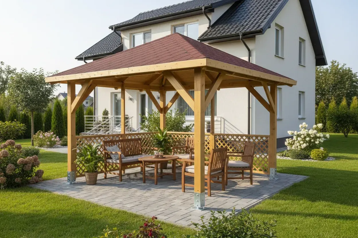 Tato stříška není povinná, ale dodává altánu elegantní a funkční vzhled. Vhodná zejména pro altány s grilem nebo otevřeným ohništěm.