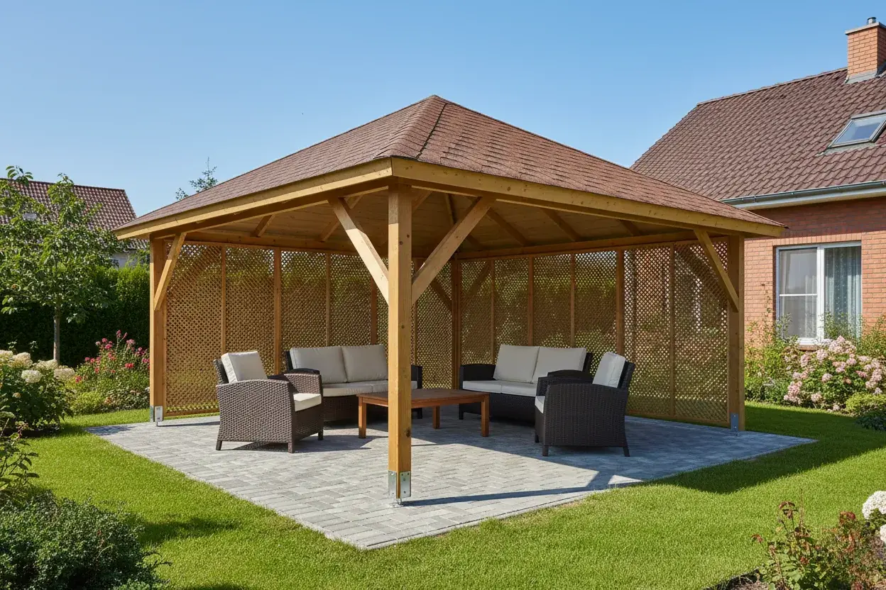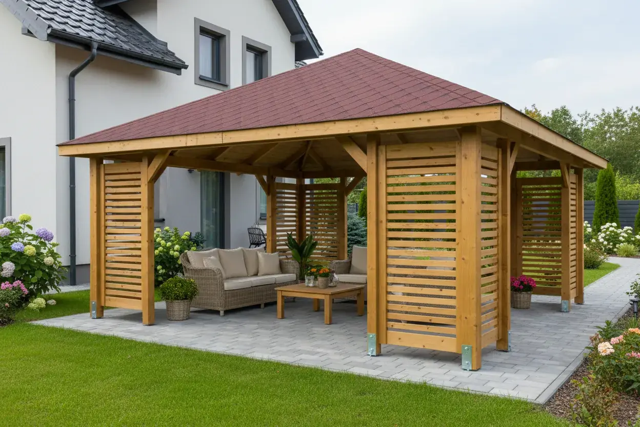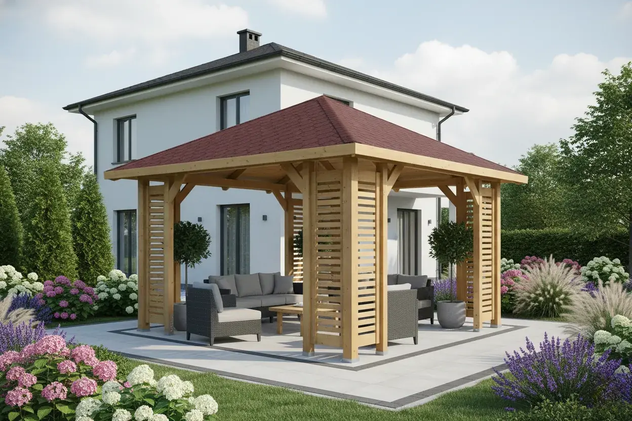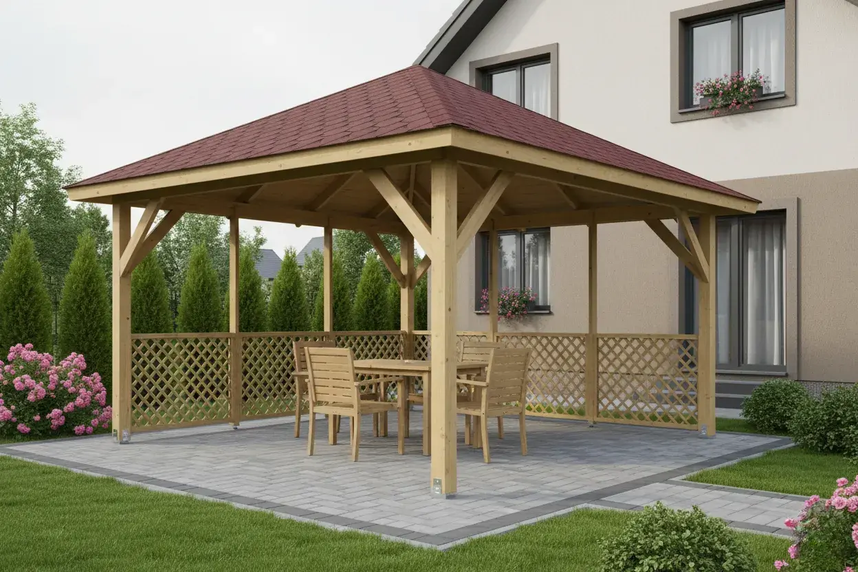Objednejte si altán včas, zejména během letní sezóny. Dodací lhůta v této době je obvykle 2–3 týdny. Dřevo má odolnou povrchovou úravu, takže jej lze bezpečně skladovat a montovat později.