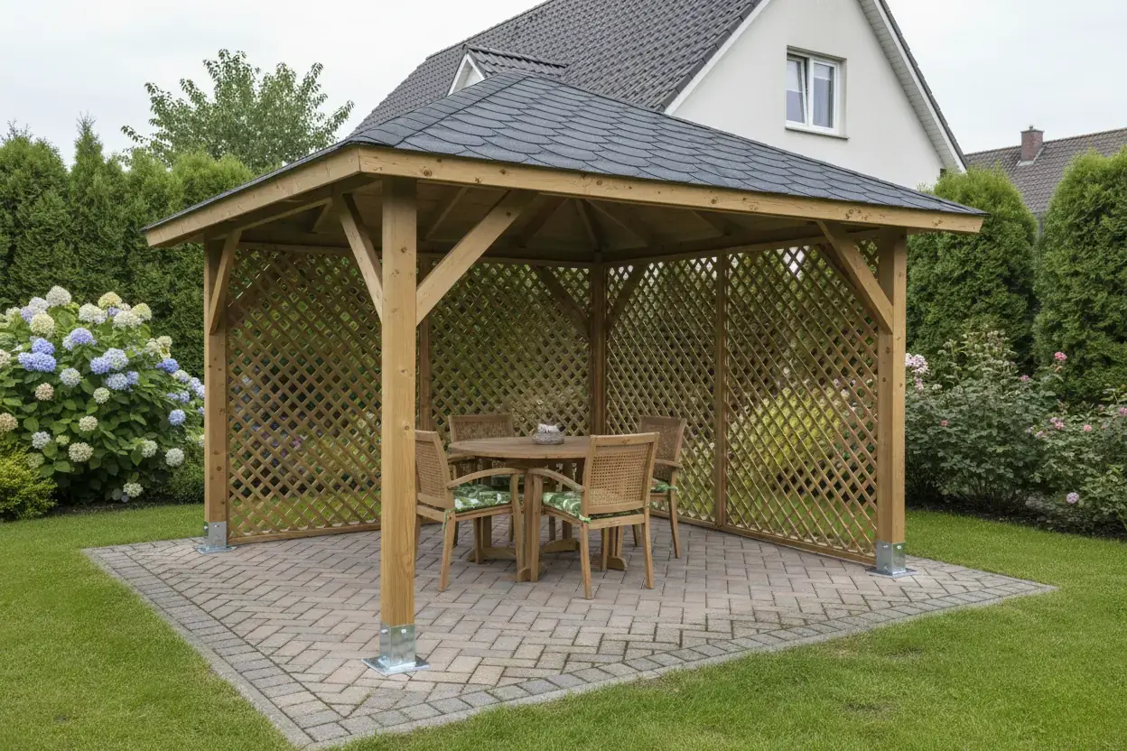 Objednejte si altán včas, zejména během letní sezóny. Dodací lhůta v této době je obvykle 2–3 týdny. Dřevo má odolnou povrchovou úpravu, takže jej lze bezpečně skladovat a montovat později.