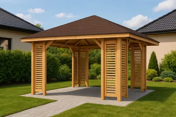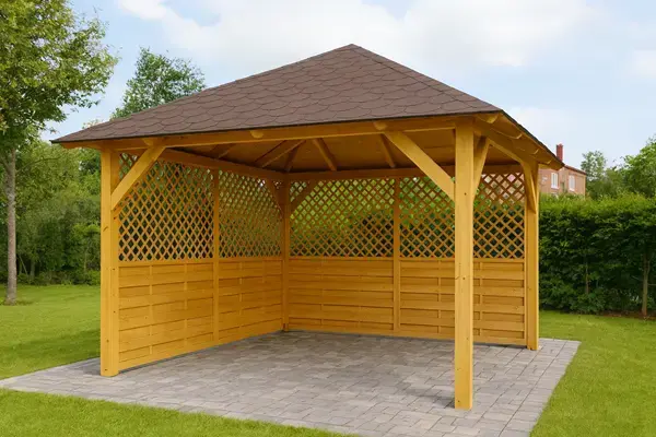 Objednejte si altán včas, zejména během letní sezóny. Dodací lhůta v této době je obvykle 2–3 týdny. Dřevo má odolnou povrchovou úpravu, takže jej lze bezpečně skladovat a montovat později.