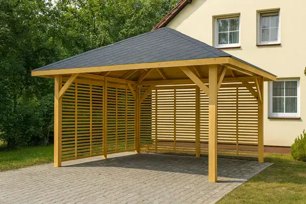 Montáž je jednoduchá a nevyžaduje speciální nářadí. Všechny prvky jsou připravené k sestavení. Přístřešek dodáváme s montážním návodem, nebo si můžete objednat profesionální montáž.