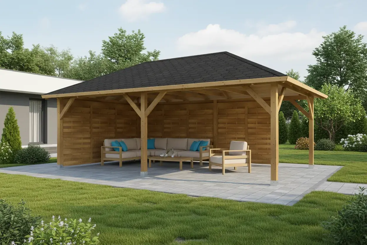 Objednejte si altán včas, zejména během letní sezóny. Dodací lhůta v této době je obvykle 2–3 týdny. Dřevo má odolnou povrchovou úpravu, takže jej lze bezpečně skladovat a montovat později.