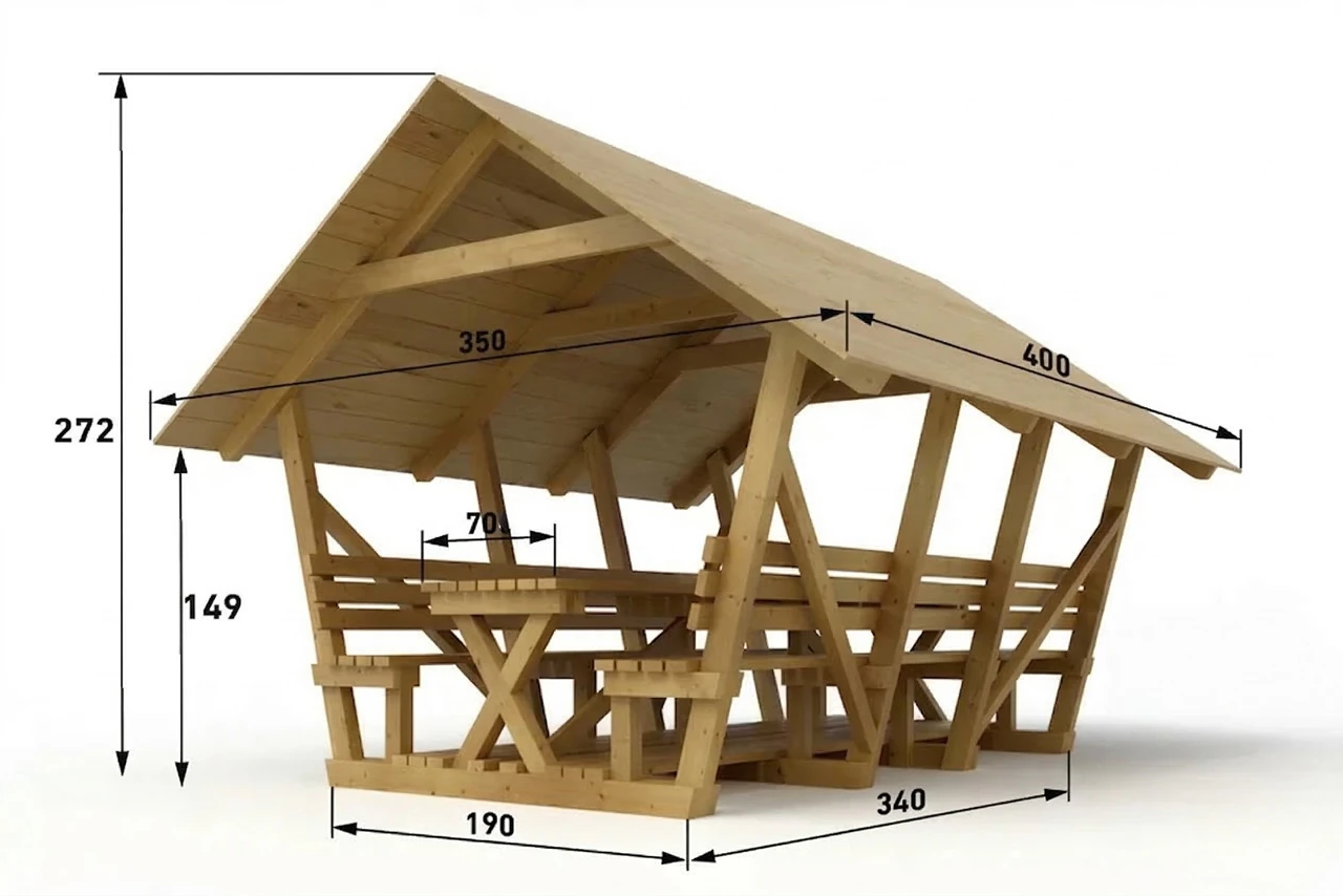 Větší rozměr konstrukce nabízí dostatek místa pro pohodlné posezení, stolování i trávení času s rodinou či přáteli. Integrovaný stůl a lavice zajišťují praktické a okamžitě využitelné řešení bez nutnosti dalšího vybavení.