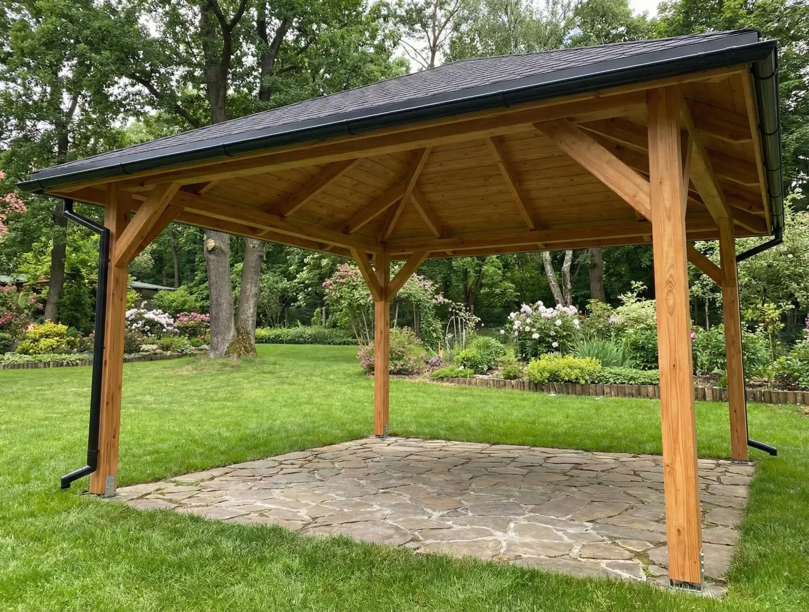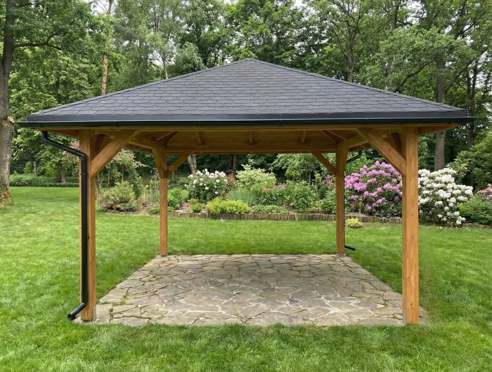 Tato stříška není povinná, ale dodává altánu elegantní a funkční vzhled. Vhodná zejména pro altány s grilem nebo otevřeným ohništěm.