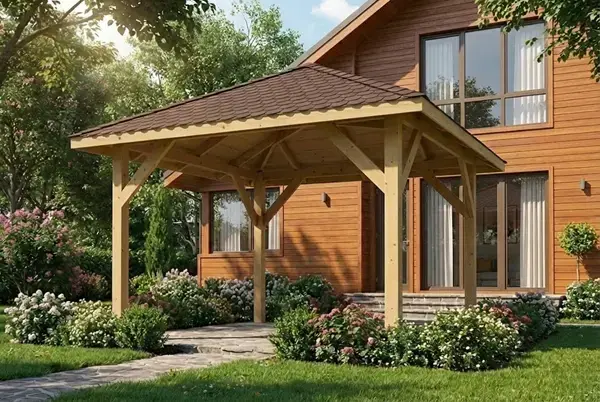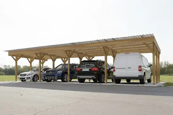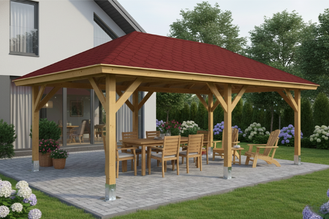 Objednejte si přístřešek včas, zejména během letní sezóny. Dodací lhůta v této době je obvykle 2–3 týdny. Dřevo má odolnou povrchovou úpravu, takže jej lze bezpečně skladovat a montovat později.