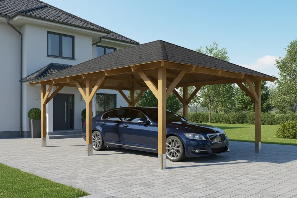 Objednejte si carport včas, zejména během letní sezóny. Dodací lhůta v této době je obvykle 2–3 týdny. Dřevo má odolnou povrchovou úpravu, takže jej lze bezpečně skladovat a montovat pozděj