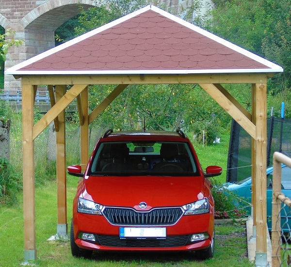 Carport je vyroben z kvalitního smrkového dřeva, ošetřeného ekologickou tlakovou impregnací TANALITH® E. Díky tomu je odolný vůči povětrnostním vlivům a připraven k dalšímu natření barvou dle vašeho výběru. Přístřešek dodáváme ve formě stavebnice. Střešní prkna jsou součástí dodávky, palubky za příplatek. (Všechny prvky jsou hoblované a frézované).