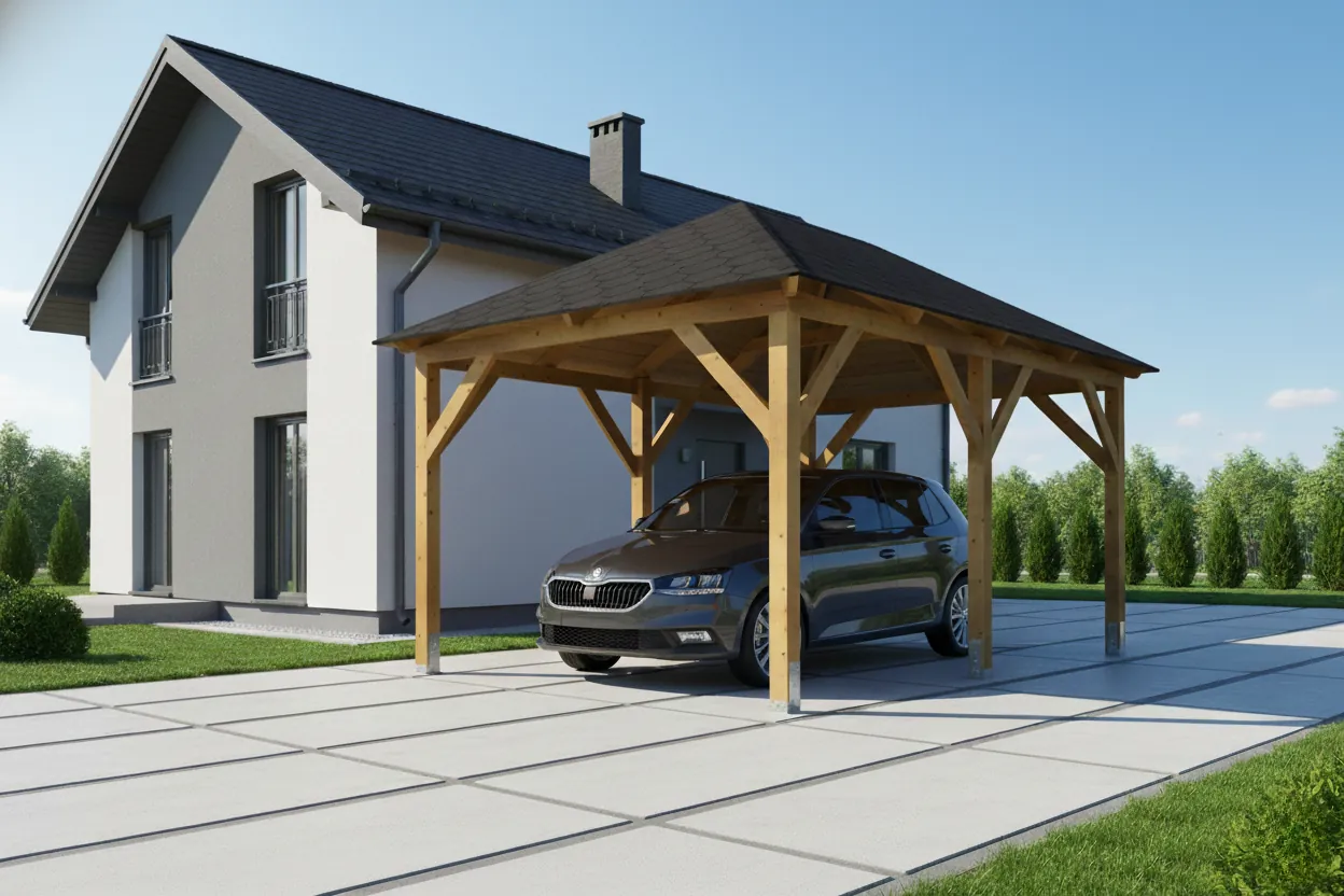 Objednejte si carport včas, zejména během letní sezóny. Dodací lhůta v této době je obvykle 2–3 týdny. Dřevo má odolną powierzchniową úpravu, takže jej lze bezpečně skladovat i montować později.
