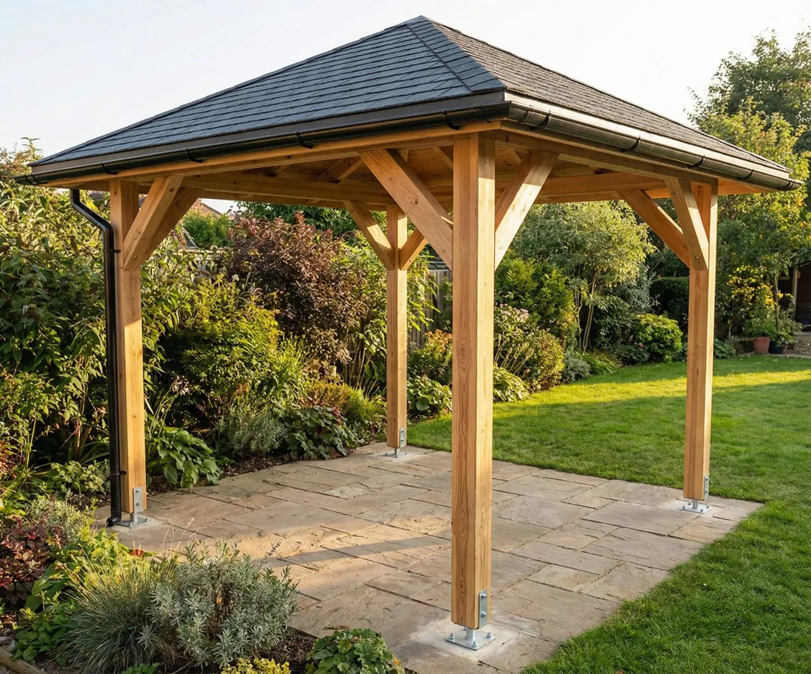 Tato stříška není povinná, ale dodává altánu elegantní a funkční vzhled. Vhodná zejména pro altány s grilem nebo otevřeným ohništěm.