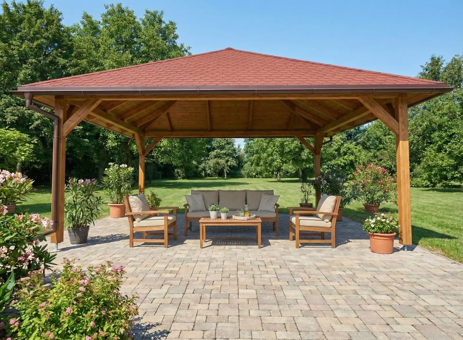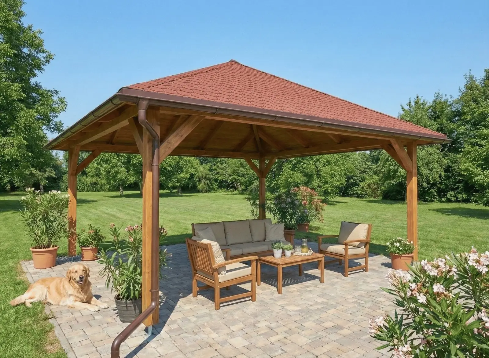 Tato stříška není povinná, ale dodává altánu elegantní a funkční vzhled. Vhodná zejména pro altány s grilem nebo otevřeným ohništěm.