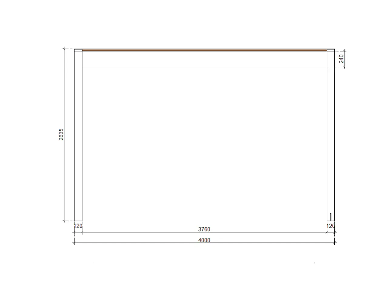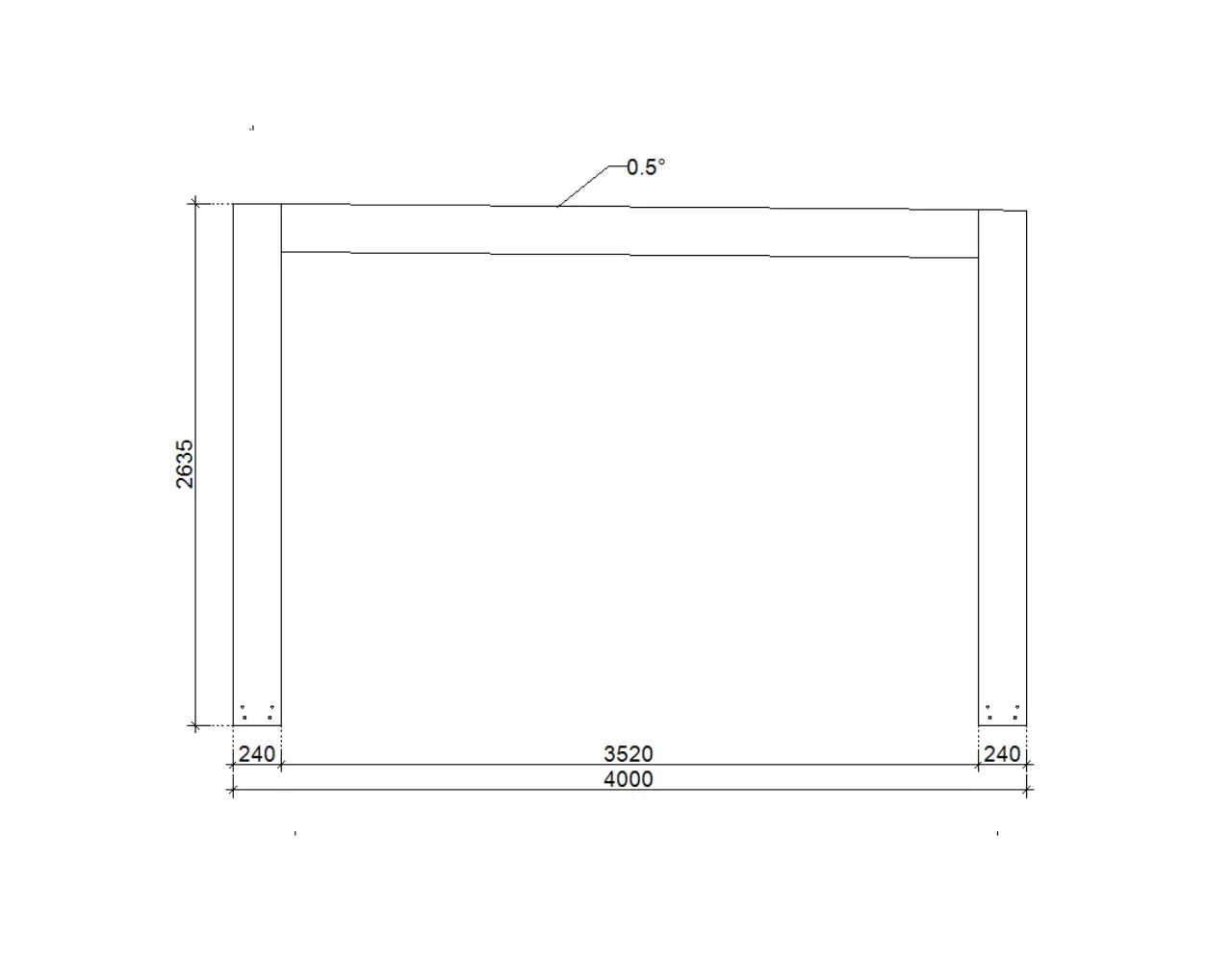 | Další rozměry | ● Krokve - 8x16 cm BSH ● Pozednice - 12x24 cm BSH ● Výška průchodu: 240 cm ● Celková výška: 265 cm ● Sklon střechy: 0,5⁰ |