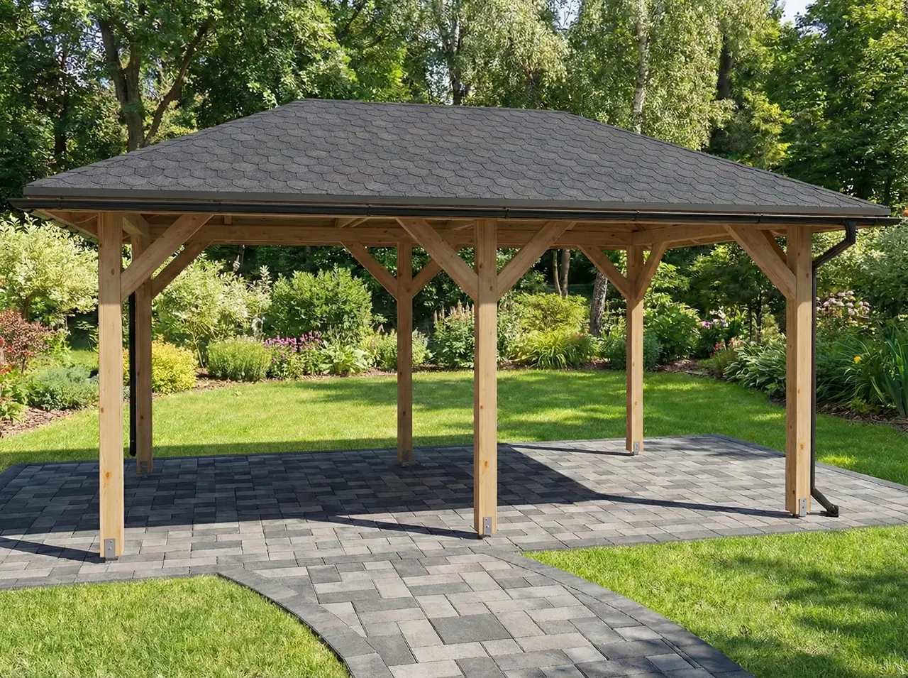 Objednejte si altán včas, zejména během letní sezóny. Dodací lhůta v této době je obvykle 2–3 týdny. Dřevo má odolnou povrchovou úpravu, takže jej lze bezpečně skladovat a montovat později.