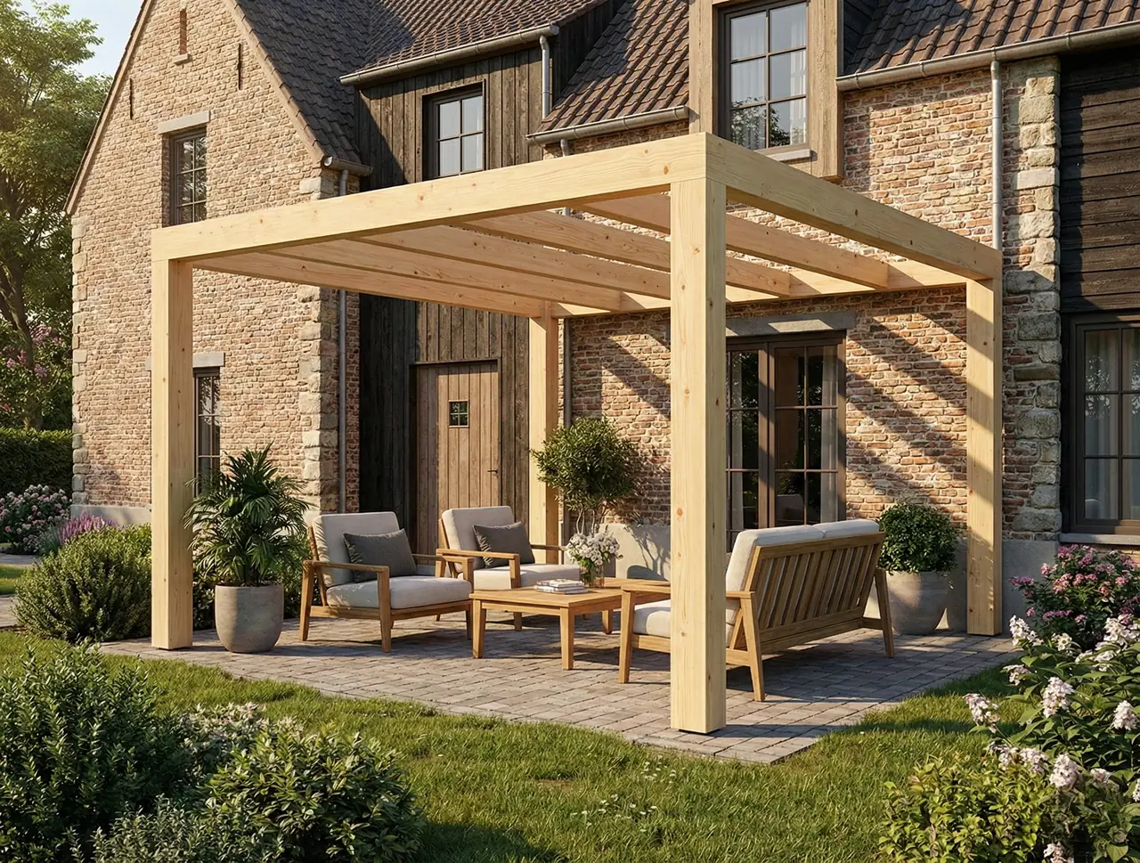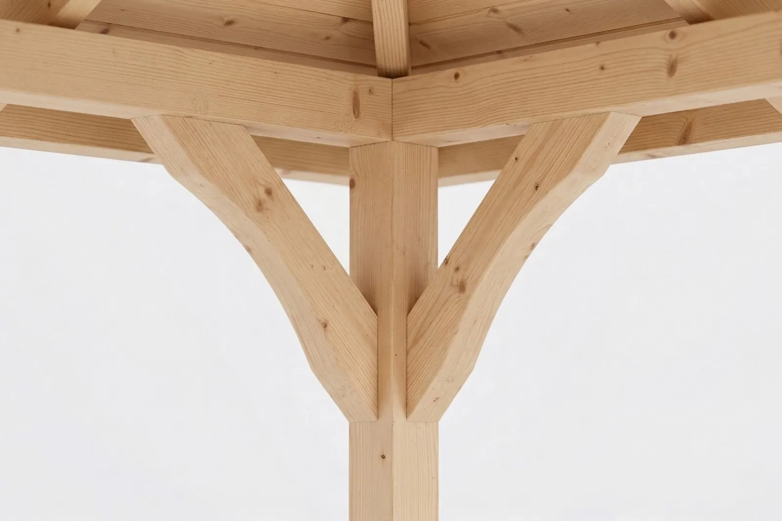 Altán je vyroben z kvalitního smrkového dřeva, ošetřeného ekologickou tlakovou impregnací TANALITH® E. Díky tomu je odolný vůči povětrnostním vlivům a připraven k dalšímu natření barvou dle vašeho výběru. Přístřešek dodáváme ve formě stavebnice. (Všechny prvky jsou Hoblované a frézované, složené na paletě).