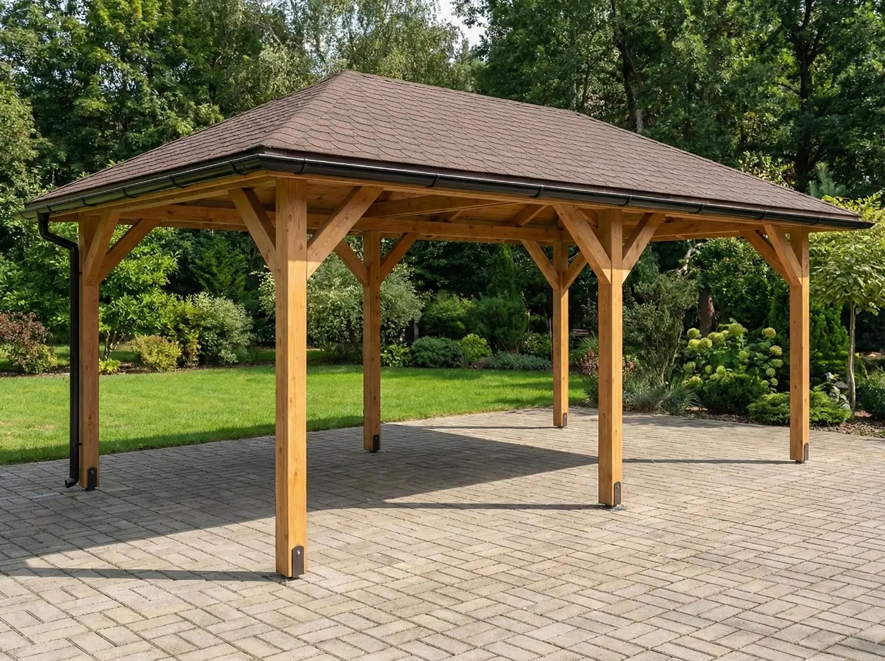 Tato stříška není povinná, ale dodává altánu elegantní a funkční vzhled. Vhodná zejména pro altány s grilem nebo otevřeným ohništěm.