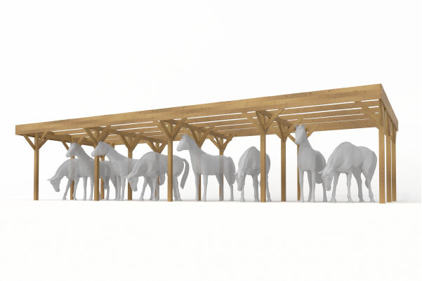 Dřevěný přístřešek pro koně 360x593 cm poskytuje výbornou ochranu vašeho majetku a zvířat před nepříznivými klimatickými jevy, ale také přímým slunečním zářením. Součástí dodávky je montážní spojovací materiál a montážní návod, které usnadňují sestavení konstrukce.
