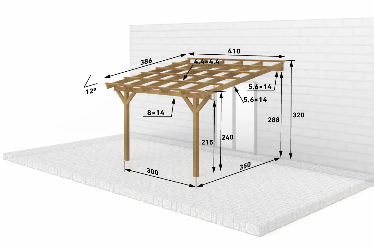 Dřevěná pergola ke zdi domu 300x350