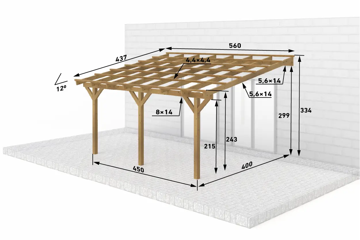Dřevěná pergola ke zdi domu 450x400