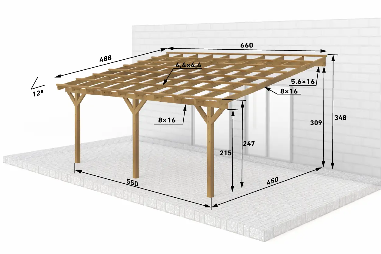 Dřevěná pergola ke zdi domu 550x450