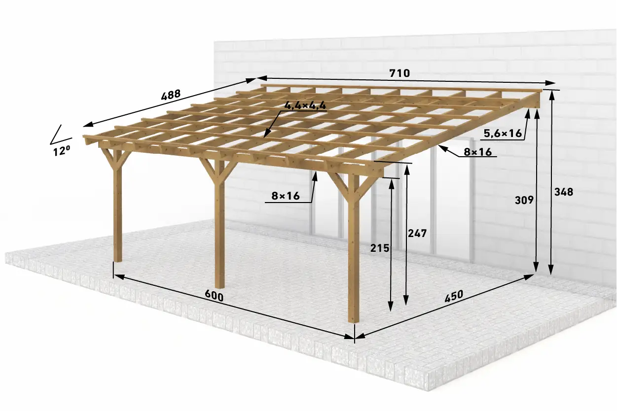 Dřevěná pergola ke zdi domu 600x450