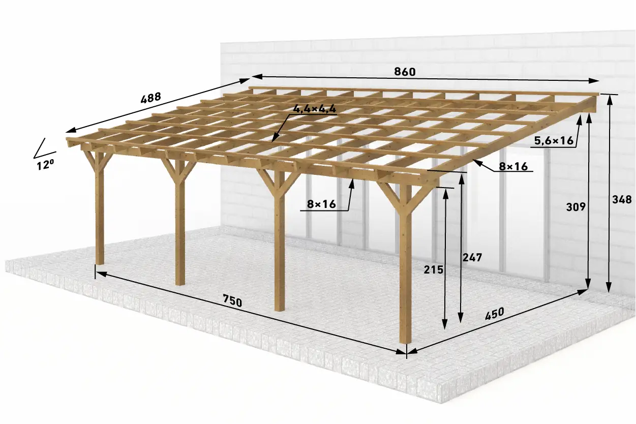 Dřevěná pergola ke zdi domu 750x450