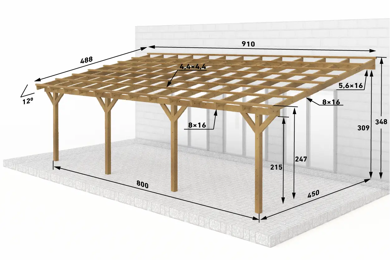 Dřevěná pergola ke zdi domu 800x450