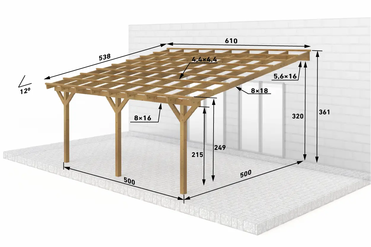 Dřevěná pergola ke zdi domu 500x500