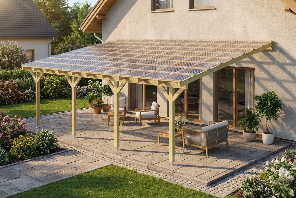 Elegantní, čisté a funkční řešení pro zastřešení pergol a přístřešků, které propouští dostatek světla a zároveň chrání před deštěm a UV zářením.