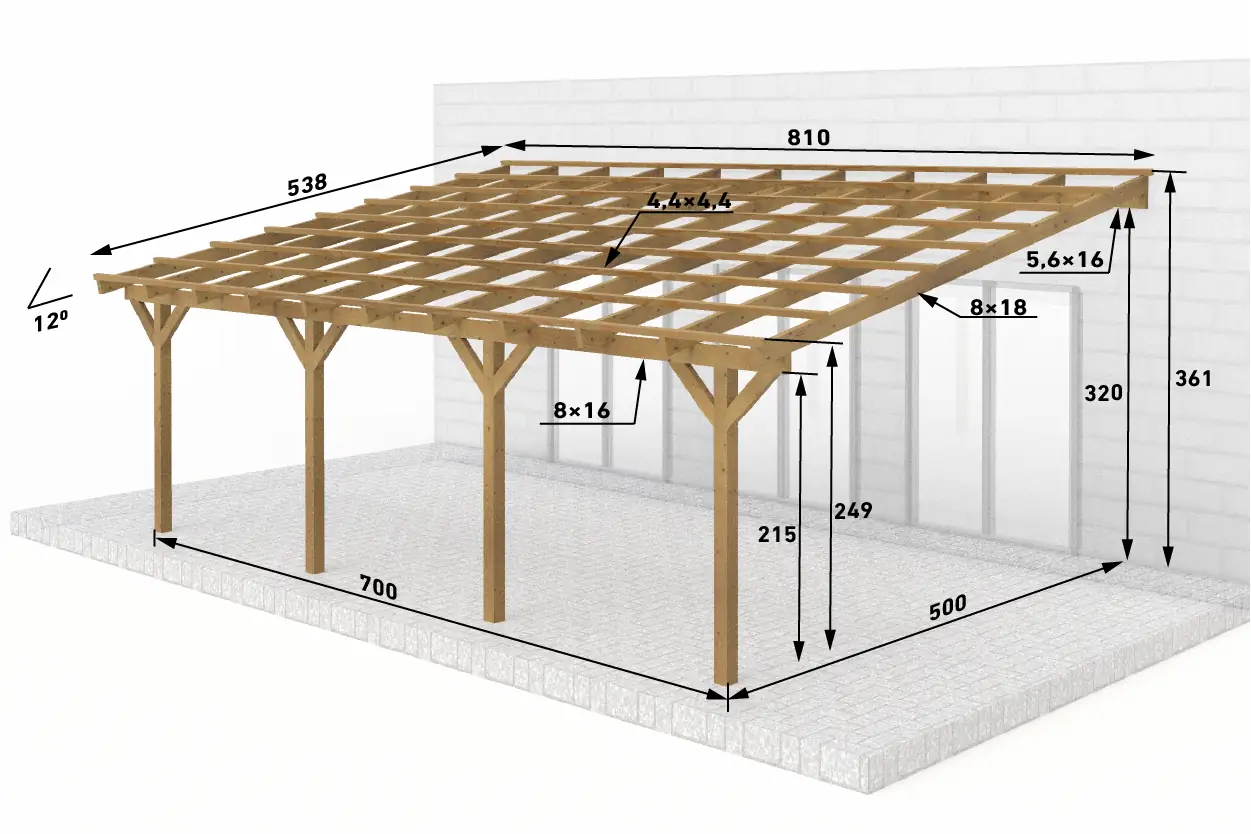 Montáž je jednoduchá a nevyžaduje speciální nářadí. Všechny prvky jsou připravené k sestavení. Přístřešek dodáváme s montážním návodem, nebo si můžete objednat profesionální montáž.