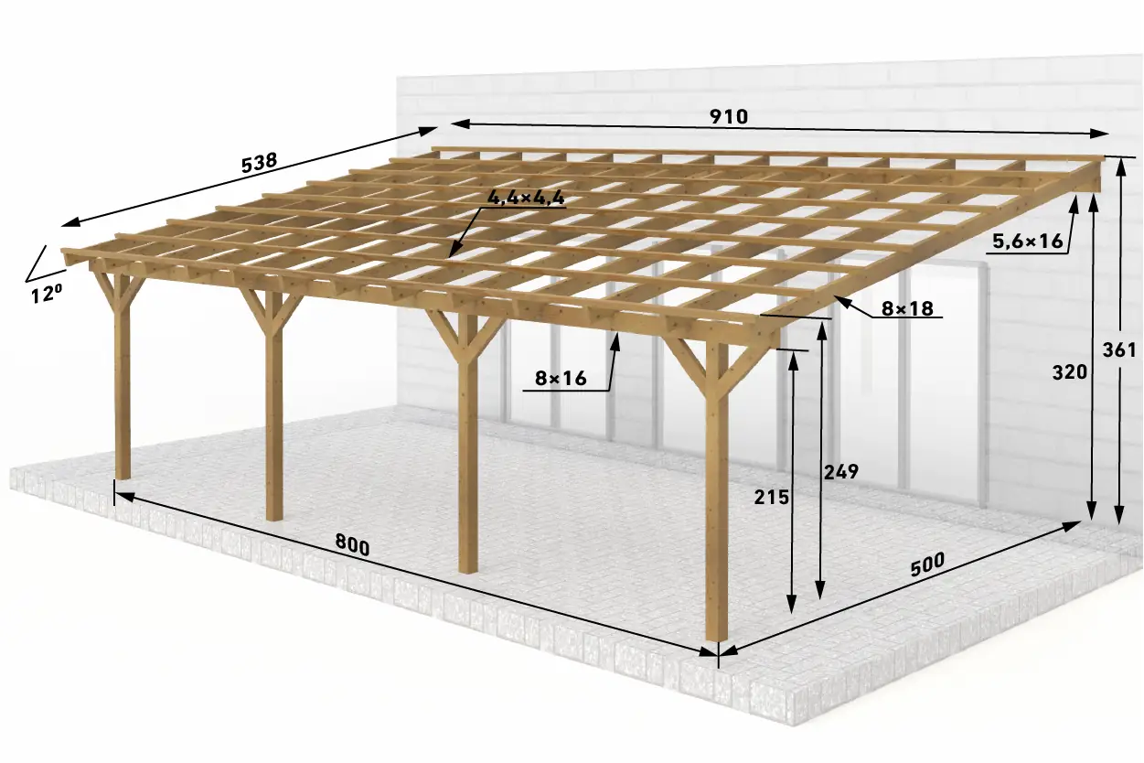 Dřevěná pergola ke zdi domu 800x500